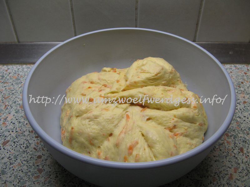 Mit einem Tuch abdecken und nochmal 30 Minuten an einem warmen Ort gehen lassen.